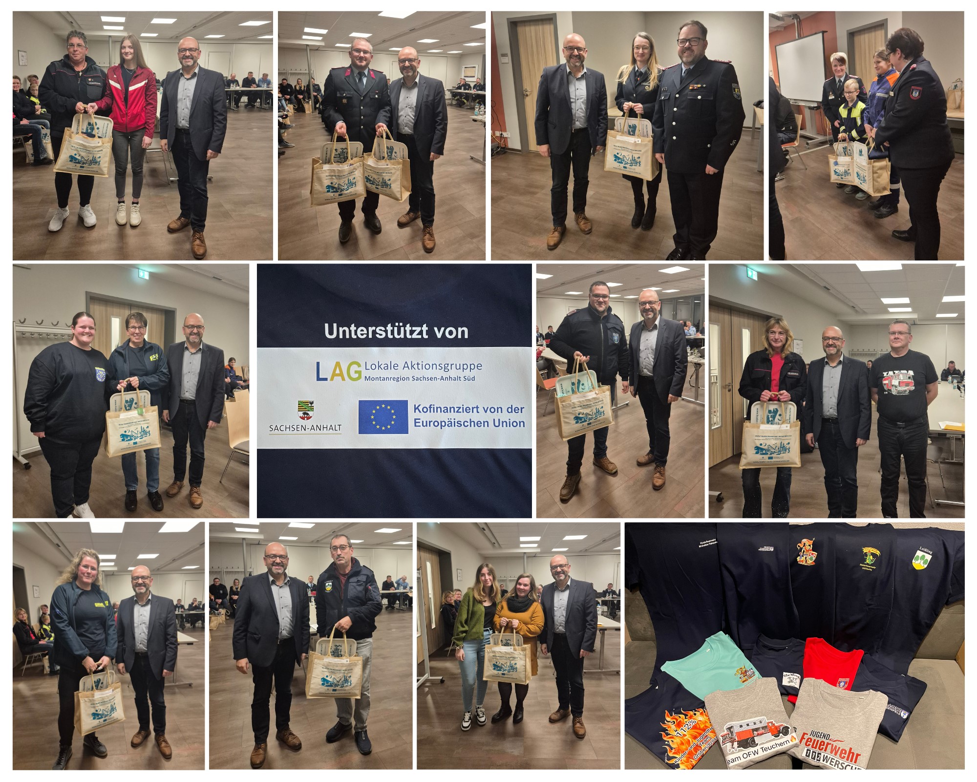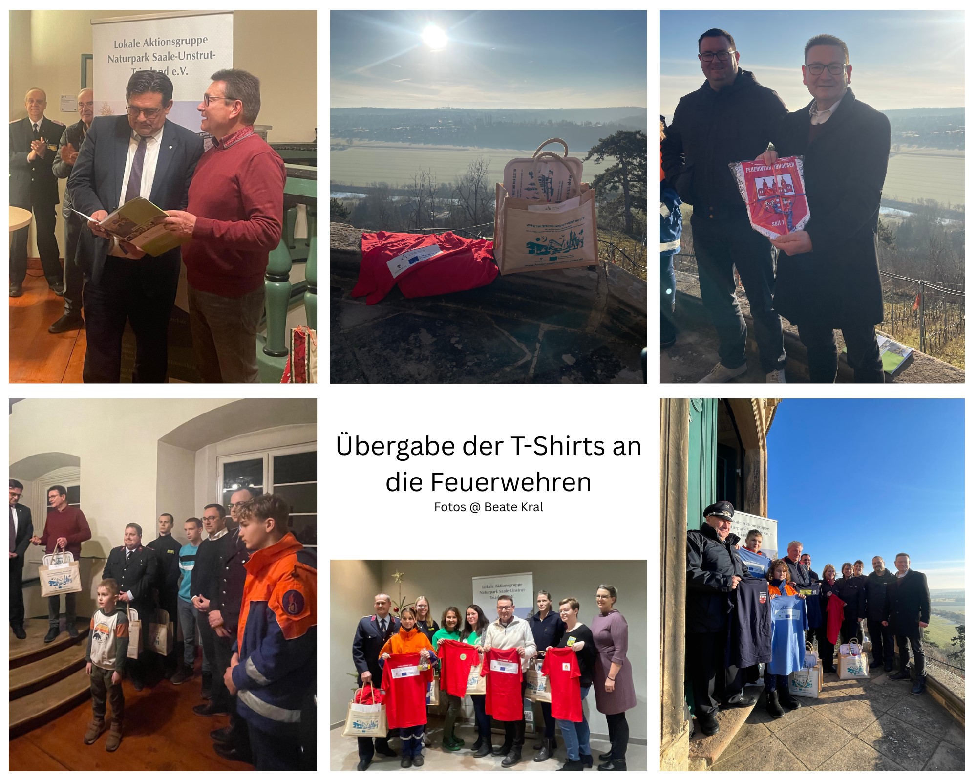 Im Rahmen der Stadt- und Gemeindewehrleiterberatung des Burgenlandkreises auf der Feuerwache Weißenfels am 24.11.2025 konnte der Vorsitzende des LAG Montanregion Saale-Unstrut-Trias e.V. Andy Haugk die T-Shirts an die glücklichen Gewinner übergeben.